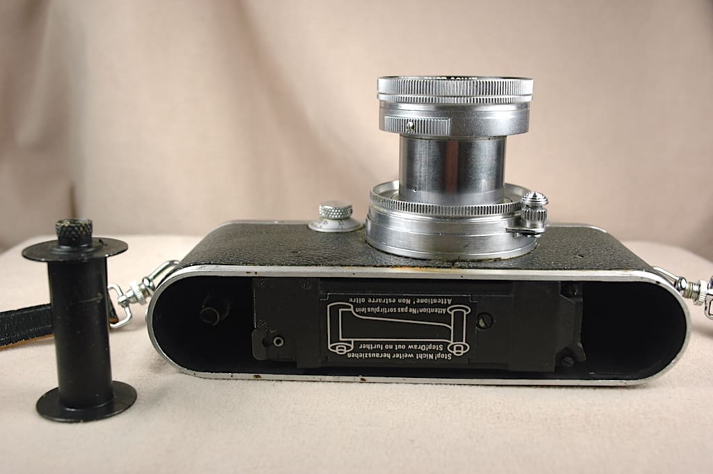 Every vintage camera fan needs a Leica IIIC rangefinder camera. The Leica brand is legendary for exceptional quality and innovation. The III series cameras brought 35mm photography into the forefront of popular and professional photography. Its famous screw-mount lenses were the top of the line and remain competitive in quality with modern lenses. Another fun aspect of these cameras is their gadgetry. There are dozens of add-ons you can find to do many different things with the Leica IIIC. Our Leica IIIC has been serviced, cleaned, lubed and adjusted. It comes with an original leather camera case, a leather neck strap and a viewfinder that we think is called the VIOOH. Our viewfinder helps you frame for the following Leica lenses 35mm, 50mm, 85mm, 90mm and 135mm. Our camera also comes with a 50mm Summitar collapsible lens. All of our sample photos were taken with this Leica IIIC and the Summitar lens. The lens has an aperture range of f2 to f16. The shutter speed ranges from 1/500th of a second to 1 second and a B/bokah setting. It also comes with an original film-uptake spool. Cosmetically, you can see cuts in the black leather and brassing on parts of the metal body. No dents and the structural integrity is excellent. We believe the camera and lens were made circa 1947. As color film was still quite a new thing at that time, the colors might be a bit off if you shoot modern 35mm color film through this vintage lens. However, it should shoot black-and-white film just as well as any camera. We shot a roll of Kodak XX film by metering with the classic “Sunny 16” guesstimating. If you are unfamiliar with the Leica IIIC, you will need to trim the film leader to properly load the camera. One of the Leica gadgets not included is called an ABLON, which helps to trim the film properly. Genuine ones are available online but are expensive. You can find some really good cheap ones that were 3D printed. The leather case is worn and poorly engraved with an indecipherable name. Please contact us with any questions.