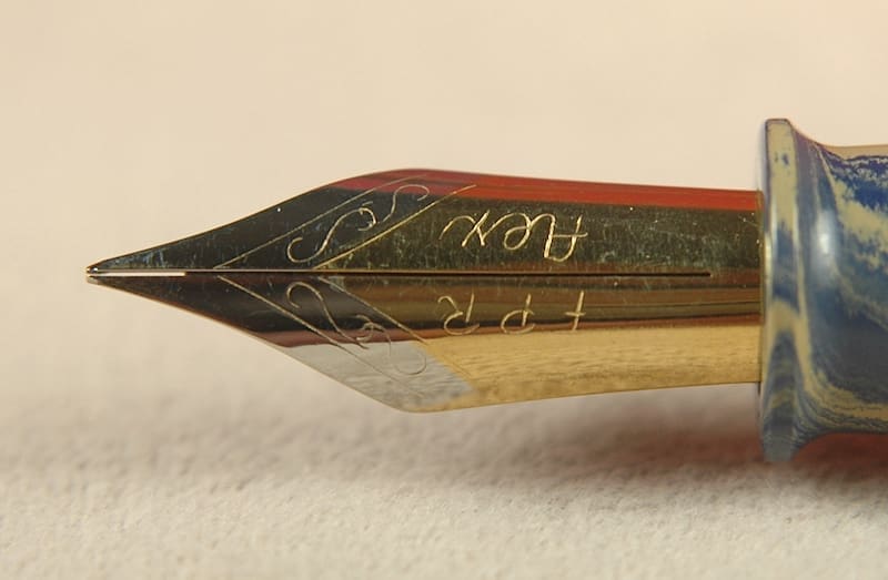 We search far and wide for all the latest and greatest pens. Today we are very excited to showcase a gigantic pen from India’s Ranga Pen Company. We don’t know the model name, but we do know that it is made from a fantastic blue-and-tan hard rubber. That is why we call it the Ranga Blue-and-Tan Fantasy. Like a really old vintage pen, you fill this with an eyedropper. It can definitely hold a lot of ink. As a special treat, it comes preloaded with a two-tone steel “FPR Flex” nib. FPR stands for Fountain Pen Revolution. While it has flex, we consider it more of a semi-flex than a wet-noodle flex. Nevertheless, you will write from about a medium to more than 1mm wide! This Ranga Blue-and-Tan Fantasy looks brand new to us. 15cm capped.