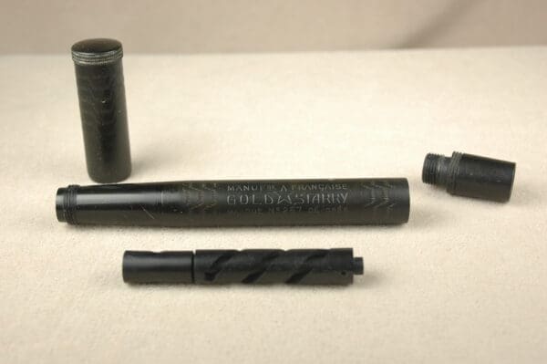 Nearly mint parts for French Safety Fillers don’t come around every day. We have an incomplete pen with this Gold Starry No. 257. There is the cap, barrel, inner part and a tail piece that is not closed on either end. No nib or feed or other missing parts. Sold as is, no returns.